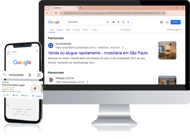 Seja no computador ou no dispositivo móvel, seu anúncio exibido no momento certo pode transformar pessoas em clientes valiosos.